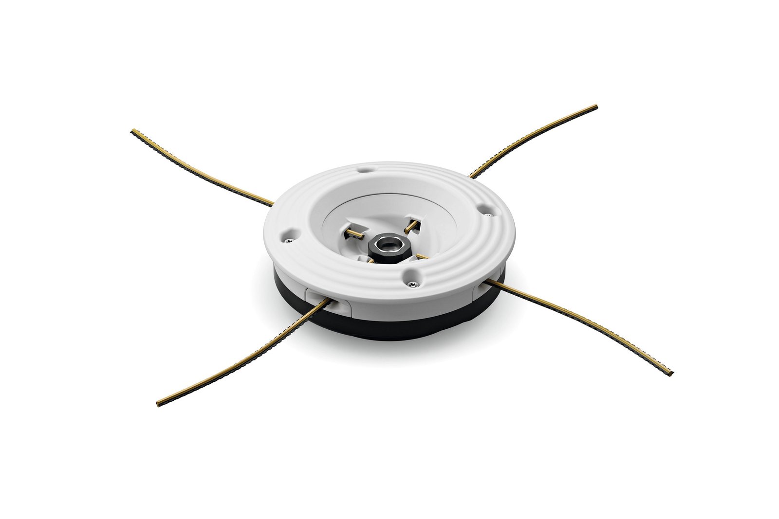 Double or quadruple mowing line cutting tool, for mowing and thinning work. Up to four lines can be easily inserted. Compatible with many different sizes and types of mowing line.