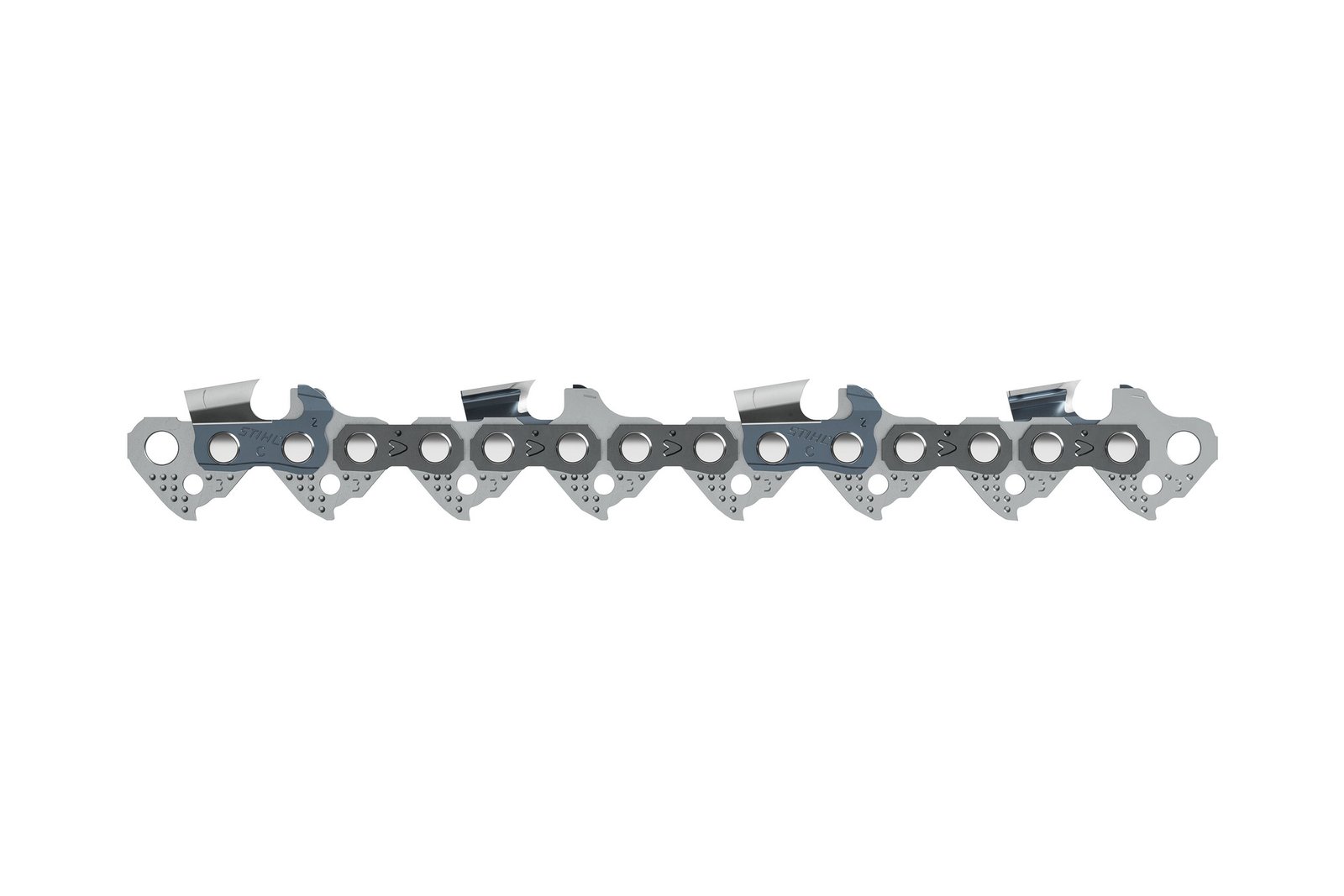 High performance saw chain for professional applications with low vibration levels, smooth cutting behaviour, low chatter and extremely high cutting and borning performance.